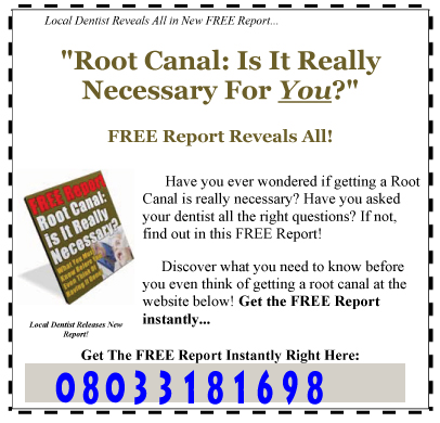 Click Here for a FREE Report on root canal therapy. Or call Toll-Free 24 hours a day for a Free Recorded Message: 0803-318-1698